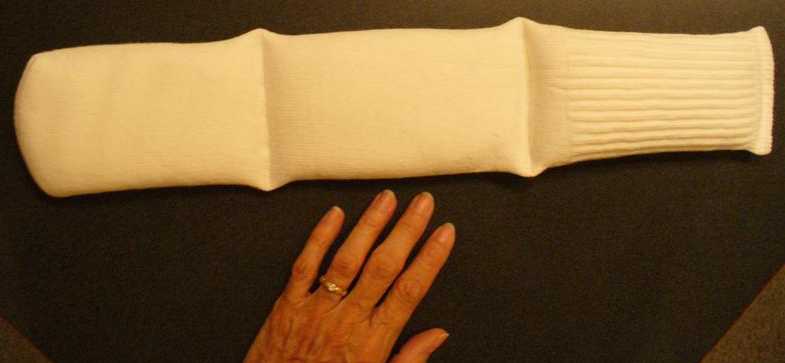 support pad used when casting a baby's limbs; vinyl cover protects pad from plaster |